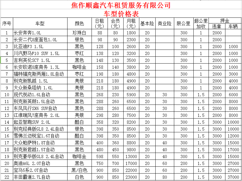 焦作順鑫租車